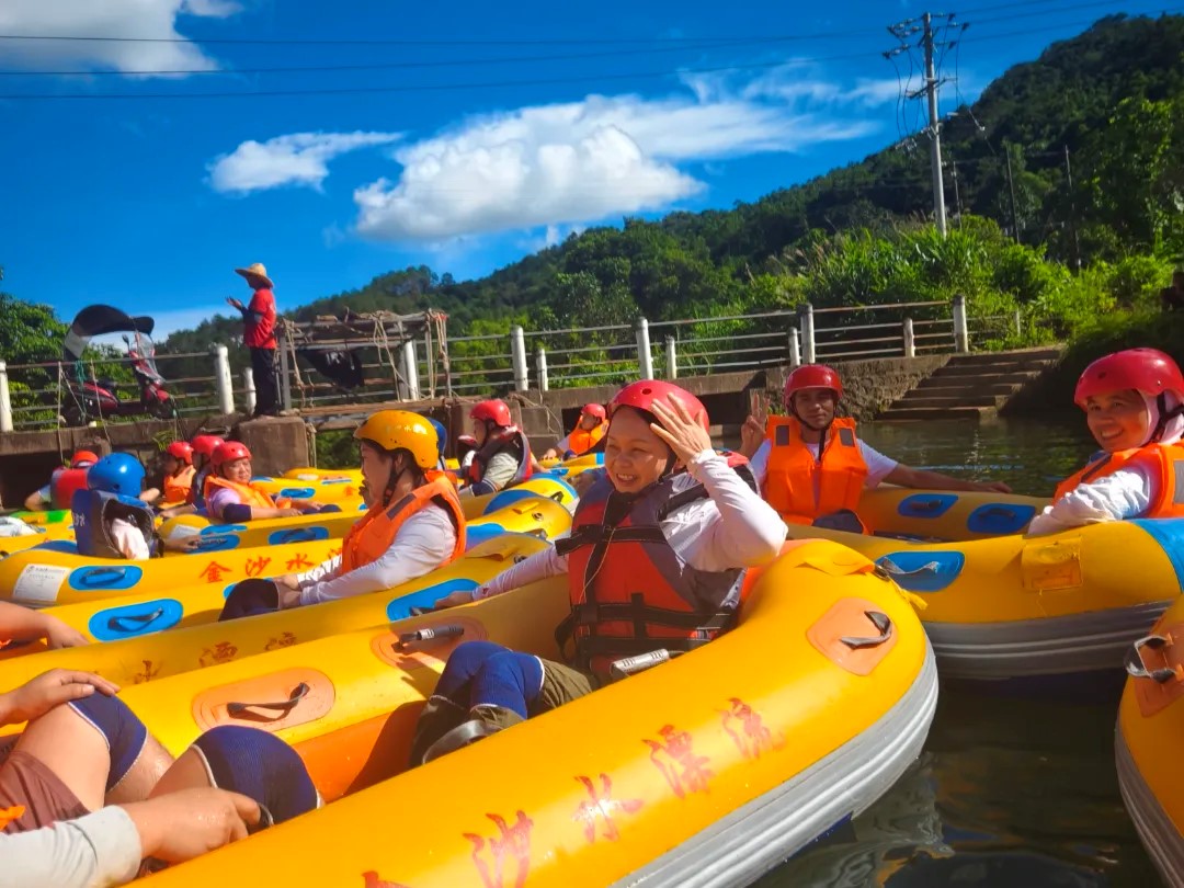 9月13日下午,各位高级合伙人齐聚防城港著名的金沙水漂流景区,开启了一场充满活力的团建之旅。在清澈而湍急的河道中,同事们两两一组,乘着皮划艇顺流而下。一路上,既有跌宕起伏的惊险瞬间,也有需要默契配合、协同操控的平缓水域。